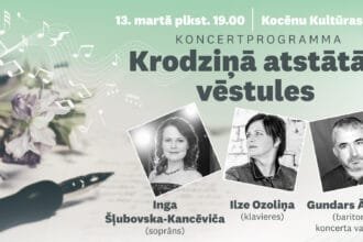 13.martÄ plkst.19.00 KocÄnu KultÅ«ras namÄ norisinÄsies koncerts āKrodziÅÄ atstÄtÄs vÄstulesā.KoncertprogrammÄ āKrodziÅÄ atstÄtÄs vÄstulesā, kurÄ piedalÄs trÄ«s izcili mÄkslinieki:…