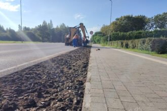 Pilsētā vairākās vietās noņem ielu nomaļu apaugumu, kas kavē Å«dens noteci no ielām Vairākās ielās pilsētā veic ielu…