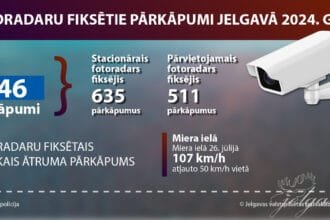 Par fotoradaru fiksētajiem pārkāpumiem pilsētā pērn sodos piemēroti 54 640 eiro Valsts policijas apkopotā statistika liecina, ka stacionārais fotoradars Miera…