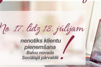 Informējam, ka darbinieku apmācību procesa dēļ Balvu novada Sociālajā pārvaldē klientu pieņemšana nenotiks no 2025. gada 17. līdz…
