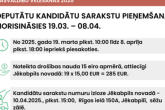 Deputātu kandidātu sarakstu pieņemšana 2025. gada 7.jūnija pašvaldību vēlēšanām Jēkabpils novada pašvaldībā tiks nodrošināta no 2025. gada 19.…
