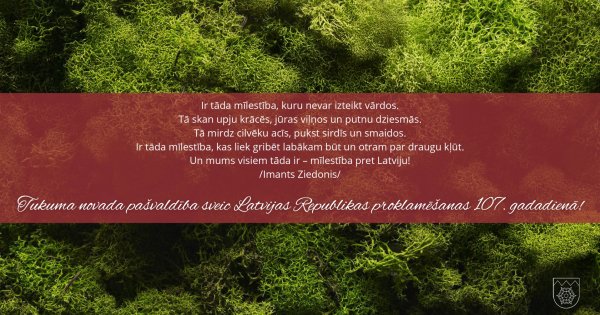 Tukuma novada domes priekšsēdētājs Gundars Važa pašvaldības vārdā sveic ikvienu novada iedzīvotāju…