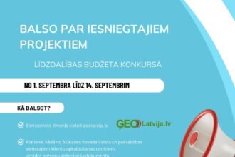 No 1. lÄ«dz 14. septembrim AlÅ«ksnes novada paÅ”valdÄ«ba aicina balsot par lÄ«dzdalÄ«bas budžeta konkursa projektiem. Ā SabiedrÄ«bas balsojumam…