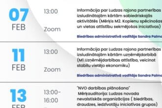 BiedrÄ«ba "Ludzas rajona partnerÄ«ba" organizÄ seminÄrus februÄrÄ«, kas sniegs vÄrtÄ«gu informÄciju un zinÄÅ”anas vietÄjo kopienu attÄ«stÄ«bai un uzÅÄmÄjdarbÄ«bas…