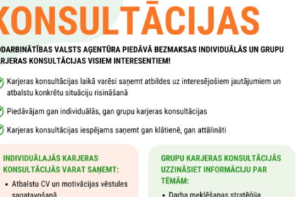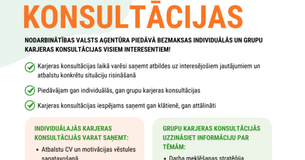 Nodarbinātības valsts aģentūra (NVA) piedāvā plašu bezmaksas karjeras atbalsta pakalpojumu klāstu, lai iedzīvotājiem palīdzētu pieņemt pārdomātus lēmumus par nodarbinātību, izglītību un profesionālo izaugsmi. Konsultācijas pieejamas individuāli un grupās, klātienē un…
