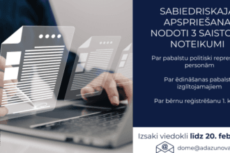 SabiedrÄ«bai viedokļa pauÅ”anai un priekÅ”likumu iesniegÅ”anai no 9. lÄ«dz 23.janvÄrim nodotsi saistoÅ”o noteikumu projekts. PriekÅ”likumus var iesÅ«tÄ«t e-pastÄ…