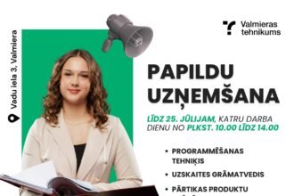 14.07.2025Izglītība, izziņa Līdz 25. jūlijam Valmieras tehnikums aicina topošos audzēkņus iesniegt dokumentus papildu uzņemšanai šādās profesijās: Programmēšanas tehniķis;…