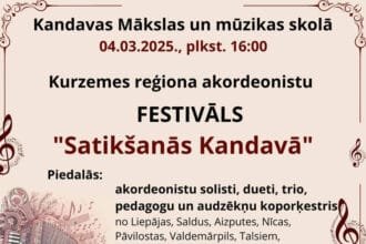 04.03.2025. plkst.16:00Kandavas Mākslas un mūzikas skolā notiks Kurzemes reģiona profesionālās ievirzes mūzikas izglītības iestāžu izglītības programmas Akordeona spēle…