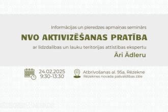 BiedrÄ«ba āRÄzeknes novada partnerÄ«ba 24. februÄrÄ« plkst. 9.30ā13.30 organizÄ informÄcijas un pieredzes apmaiÅas seminÄru āNVO aktivizÄÅ”anas pratÄ«baā, lai…