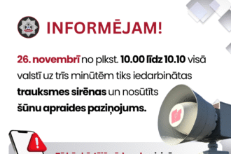 Trauksmes sirÄnu pÄrbaudes laikÄ 3 minūŔu ilgumÄ skanÄs viļÅveida signÄls, kas nozÄ«mÄ, ka skaÅas signÄls skanÄs 5 sekundes,…