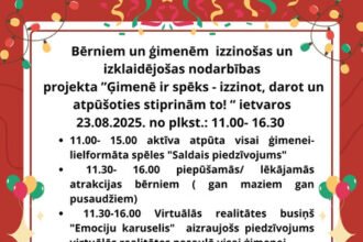 Jums ir iespēja apmeklēt 23.08.25. vēl vienu saturīgu pasākumu ģimenēm ar bērniem projekta "Ģimenei draudzīgas vides un sabiedrības…